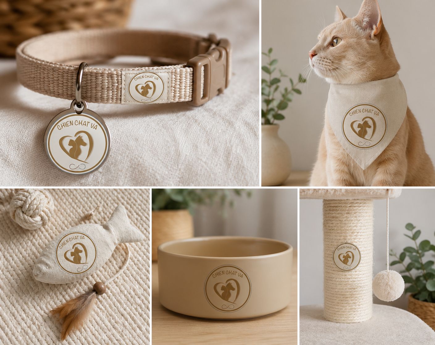 Chien Chat Va est une entreprise avec qui j'ai eu la chance de travailler sur l'identité de marque, avec son logo et ses déclinaisons